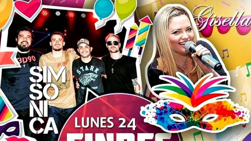 Este lunes 24, feriado de carnaval, actuarán Simsónica (Pop Rock), Grupo Avarekó (Chamamé) y Gisella (Cumbia).