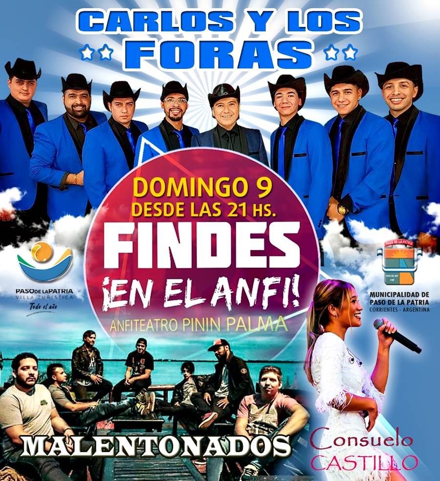Este domingo 9, está confirmada en el Pinín Palma, la presencia del grupo local “Malentonados”, banda de rock que ya estuvo en escenarios nacionales, también se contará con la presencia de la solista Consuelo Castillo y el grupo musical Carlos y Los Forasteros.