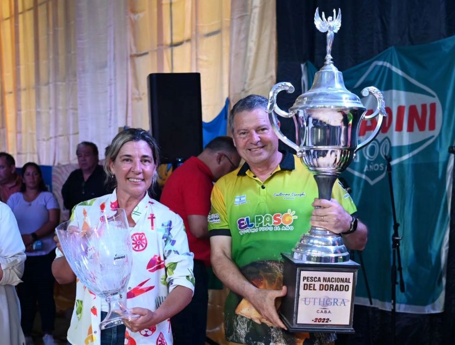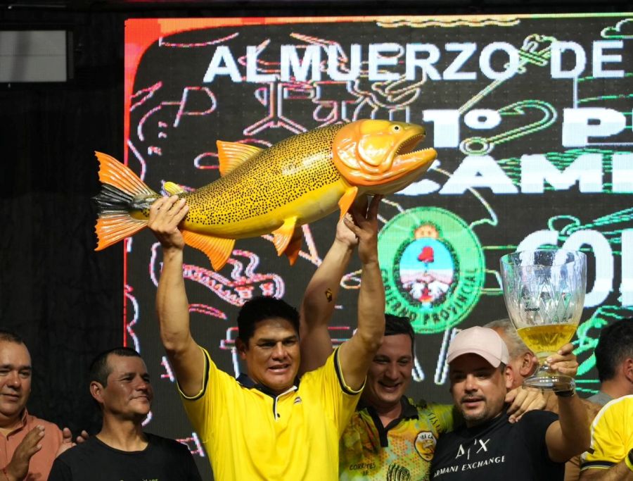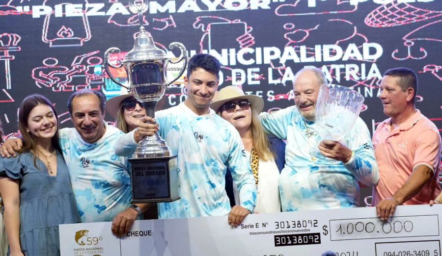 El pescador Juan Cruz García, del equipo 242 de Chivilcoy, provincia de Buenos Aires, se consagró ganador del premio a la Pieza Mayor del 59° Torneo de Pesca del Dorado, con un impresionante dorado de 90 centímetros.
