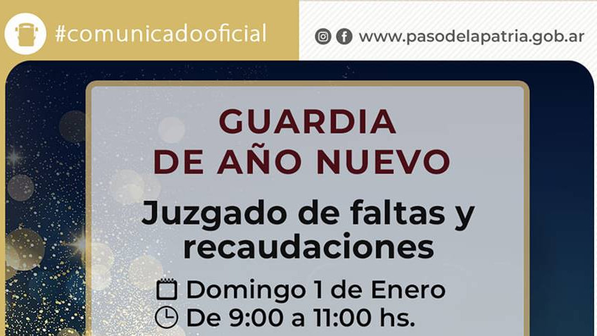 La Municipalidad de Paso de la Patria tendrá una guardia especial para este 1 de enero de 2023 en el Juzgado de Faltas municipal.