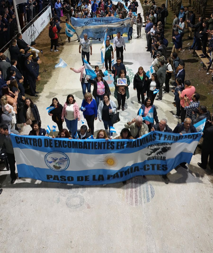 En un emotivo acto realizado en el Corsódromo Dolores Ojeda de Ituzaingó, el gobierno de la provincia de Corrientes rindió homenaje a veteranos y familiares en conmemoración del Día del Veterano y de los Caídos en la Guerra de Malvinas.