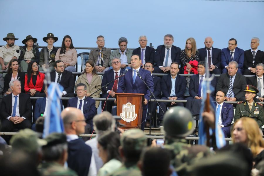Ante una multitud, Valdés instó a la ciudadanía a honrar a aquellos que lucharon "por nuestra patria con dignidad, honor y la gloria" y destacó la importancia de la política provincial que permite enviar a ex combatientes a las Islas Malvinas para "sanar las heridas".
