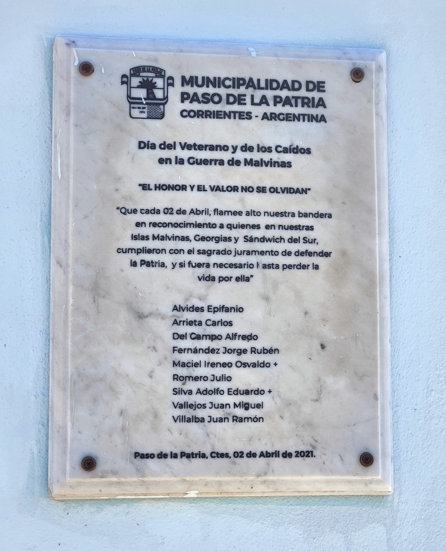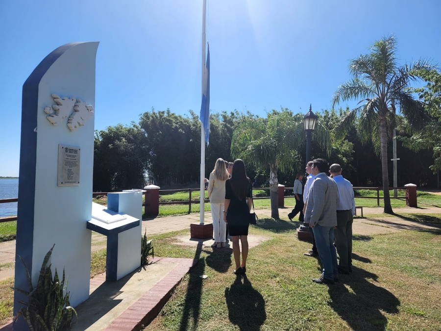 En la mañana de este 2 de abril, en la plazoleta dedicada a los Héroes de Malvinas, ubicada en el cruce de la Av. Costanera Gral. San Martín y Jacarandá de Paso de la Patria, playa Bahía Punta Mitre, se realizó el izamiento del Pabellón Nacional.