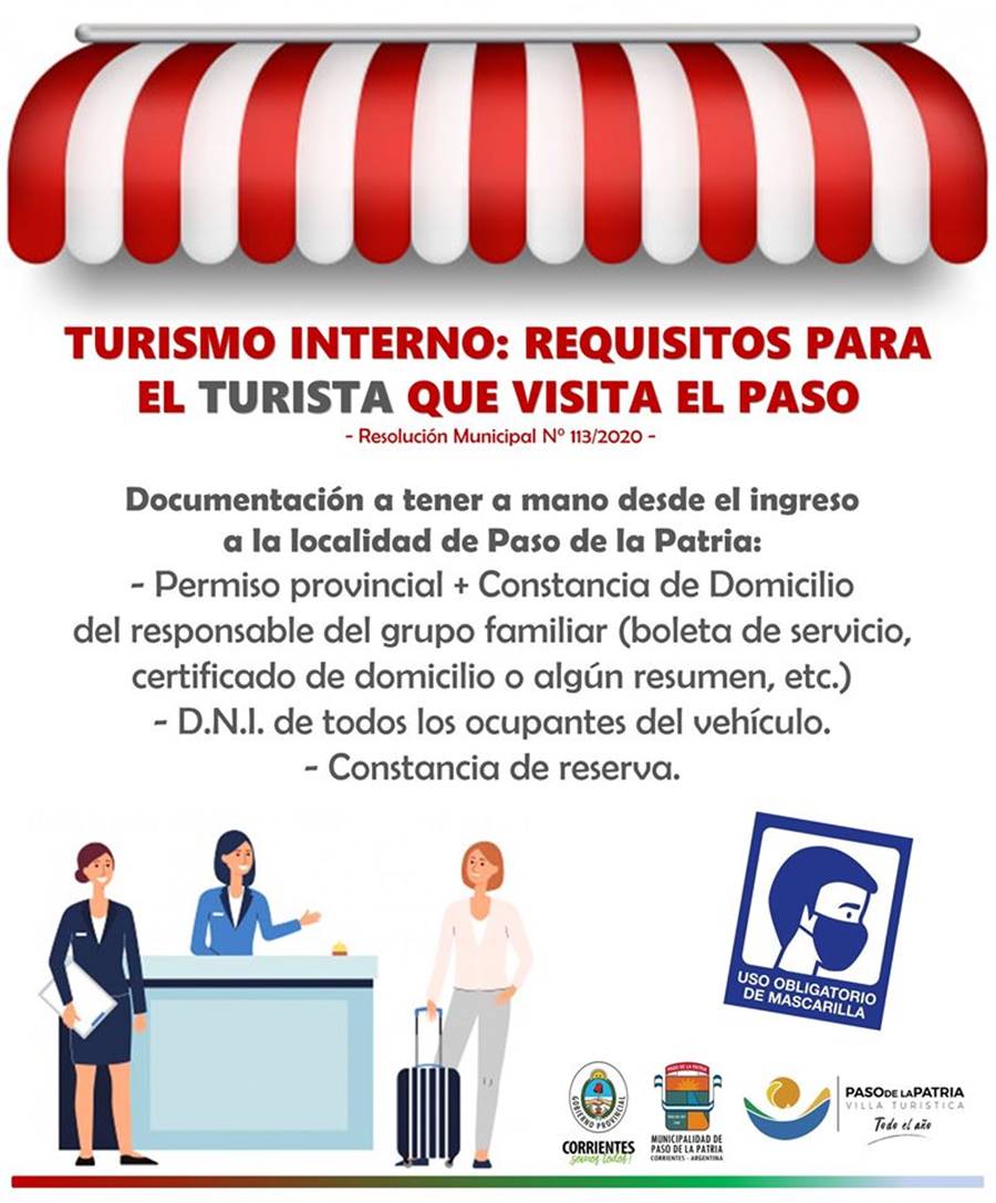 Los turistas que visiten Paso de la Patria en el marco del Turismo Interno en la provincia de Corrientes deberán tomar en cuenta algunos requisitos fundamentales.