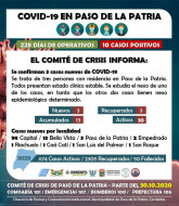 Informe epidemiológico Paso de la Patria de este viernes 30 de octubre.