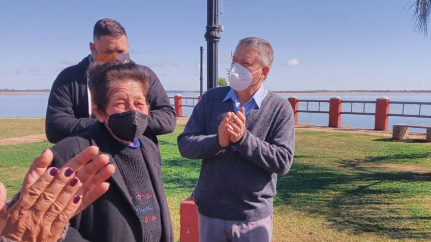 El intendente de la localidad, Guillermo Osnaghi, recibió a familiares en el espacio verde, acompañado de los representantes del departamento Pesca, el fiscal general de la Pesca Nacional del Dorado Javier Francesconi y el fiscal informático Carlos “Chechi” González, además de otros funcionarios de la comuna.