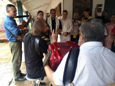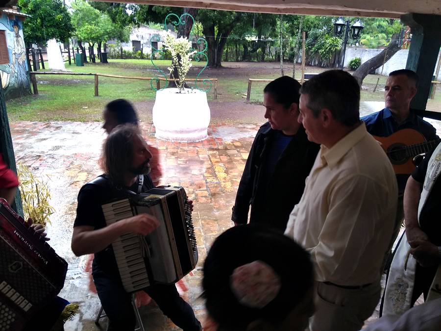 Este martes 21/01/20, en horas de la siesta correntina y con lluvia, el intendente Guillermo Osnaghi de Paso de la Patria, la intendente Verónica Morales Maciel de San Cosme, el Chango Spasiuk, gran artista del Chamamé, músico y compositor misionero, compartieron una muy linda Bailanta Chamamecera en el patio de la Biblioteca Popular Bartolomé Mitre de San Cosme.