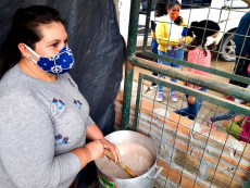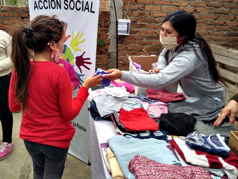 Como es habitual, siguiendo las normativas de prevención de contagios del Nuevo Coronavirus Covid-19, se ofrecieron meriendas con la modalidad de viandas, ropas de abrigo y calzados, además de elementos de desinfección e higiene, para contribuir con el cuidado en los hogares de la zona.