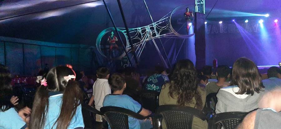 Alumnos del Nivel Primario y del Preescolar de Paso de la Patria disfrutaron del espectáculo del Circo Varekay ubicado en el predio del Médano Histórico.