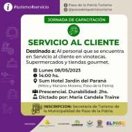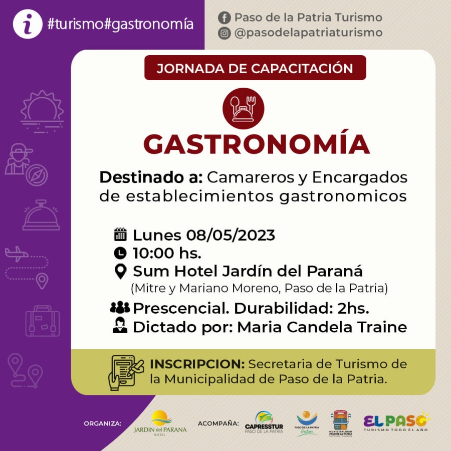 La Municipalidad de Paso de la Patria invita a participar de la Jornada de Capacitación en Gastronomía y Servicio al Cliente.