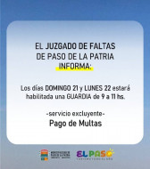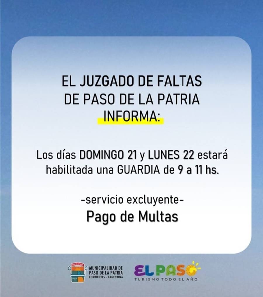 El Juzgado de Faltas de la Municipalidad de Paso de la Patria informa: