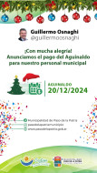 La Municipalidad de Paso de la Patria, bajo el liderazgo del intendente Guillermo Osnaghi, informa sobre el pago del Aguinaldo correspondiente a diciembre de 2024.