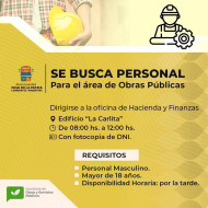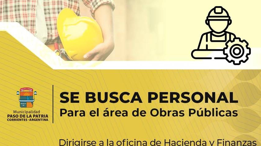 La Municipalidad de Paso de la Patria informa que “Busca personal para el Área de Obras Públicas, turno tarde”.