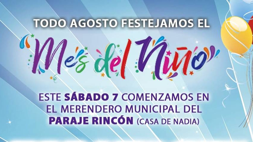 La primera actividad será este sábado 7 de agosto a partir de las 16 horas en el merendero municipal del Paraje Rincón, en la casa de Nadia. Posteriormente, la celebración se repetirá en los demás merenderos que dependen del Municipio. Cada domingo continuarán actividades para toda la familia en el anfiteatro Pinín Palma.