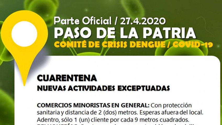 El Comité de Crisis de Paso de la Patria para Dengue y Coronavirus dio a conocer el siguiente Parte Oficial correspondiente a este lunes 27 de abril de 2020.