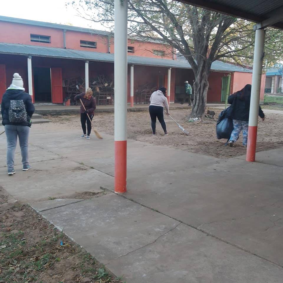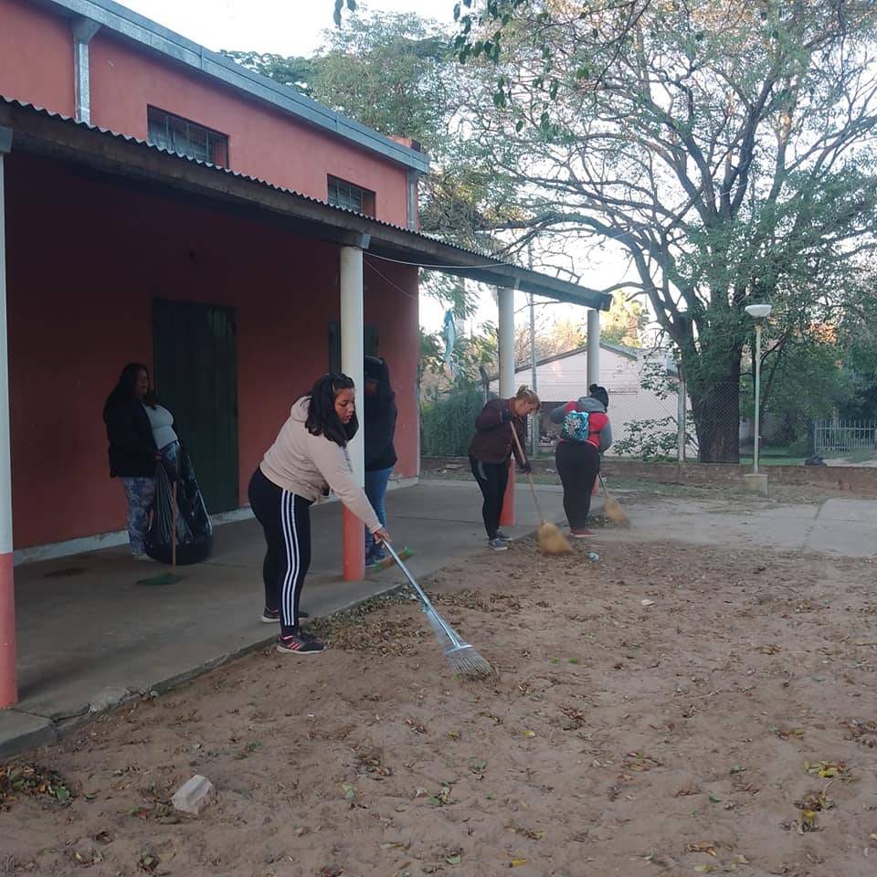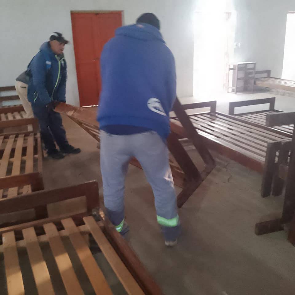 Personal de la Dirección de Obras Públicas llevan adelante trabajos de limpieza para dejar en condiciones el albergue municipal.