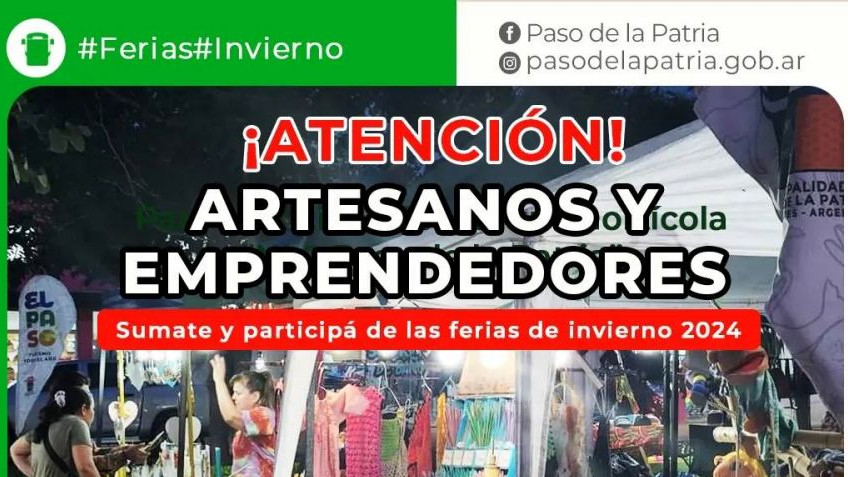La Municipalidad de Paso de la Patria, a través del Departamento de Producción y Medio Ambiente, invita cordialmente a los artesanos y emprendedores locales a participar en las Ferias de Invierno 2024.