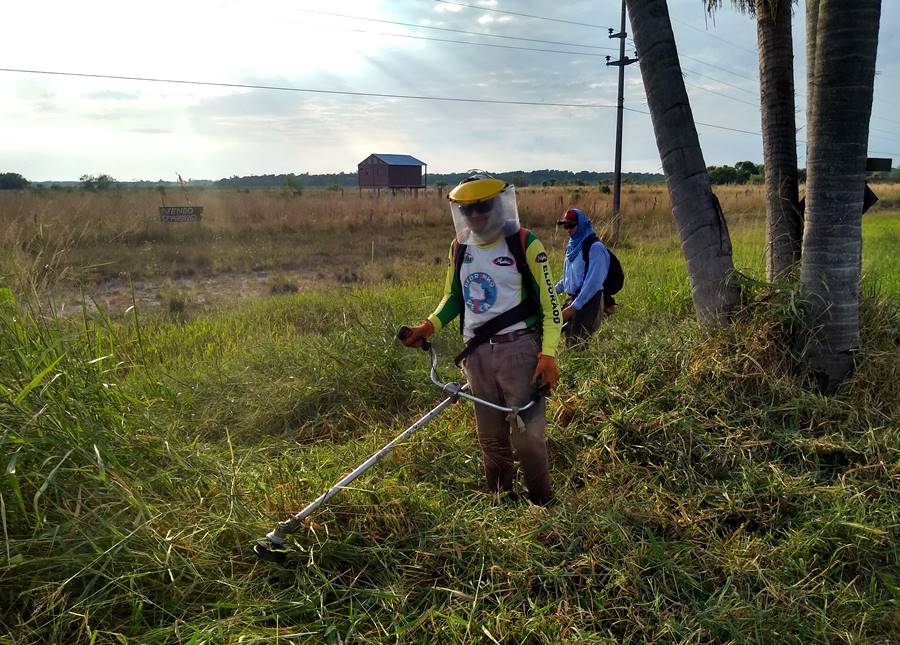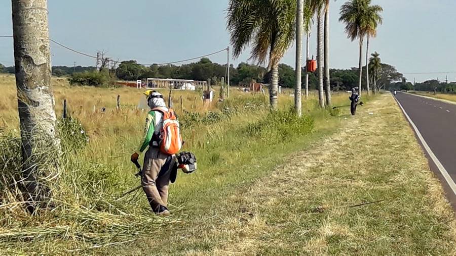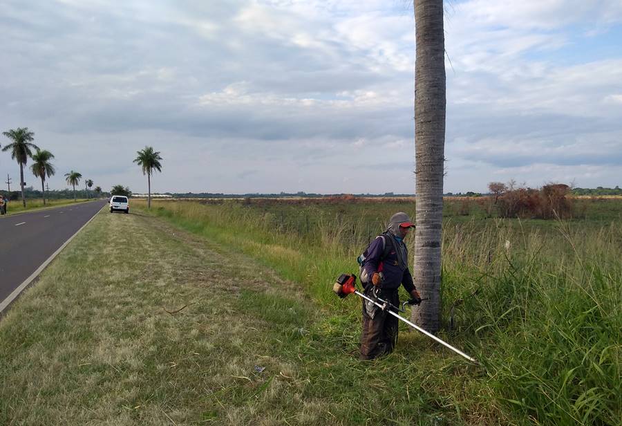 Personal municipal de Obras Públicas, motoguadañistas y un tractor con desmalezadora, complementan el trabajo de Vialidad Provincial en los detalles de corte de malezas alrededor de árboles, en cercanías de puentes y zanjones.