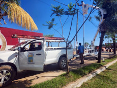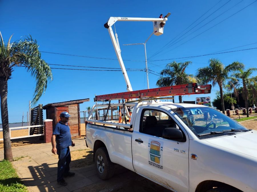Mantenimiento de luminarias en Av. Costanera de Paso de la Patria