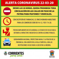 La Municipalidad de Paso de la Patria informa que este domingo 22/03/20 el Intendente Guillermo Osnaghi firmó la Resolución por la que se regula horarios de atención de comercios y circulación en la vía pública. Rige desde lunes 23/03/20.