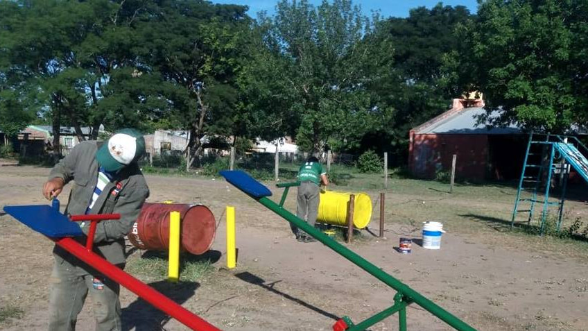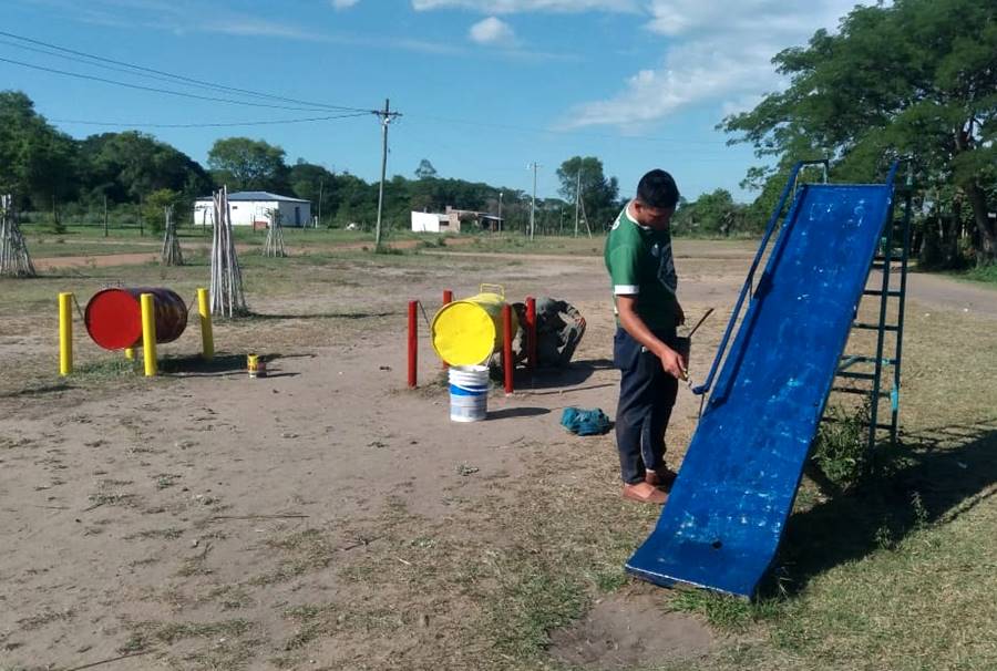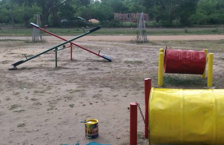 La Municipalidad de Paso de la Patria realiza trabajos de mantenimiento y recuperación de plazas y espacios verdes en barrios de la localidad.