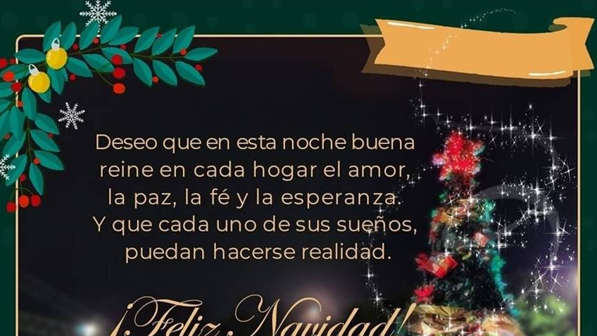 Deseo que esta Noche Buena reine en cada hogar el amor, la paz, la fe y la esperanza. Y que cada uno de sus sueños puedan hacerse realidad.