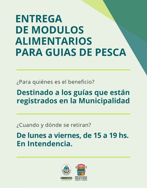 El Intendente Guillermo Osnaghi anunció este mediodía que ya se encuentra disponible una nueva partida de módulos alimentarios para guías de pesca de la localidad.