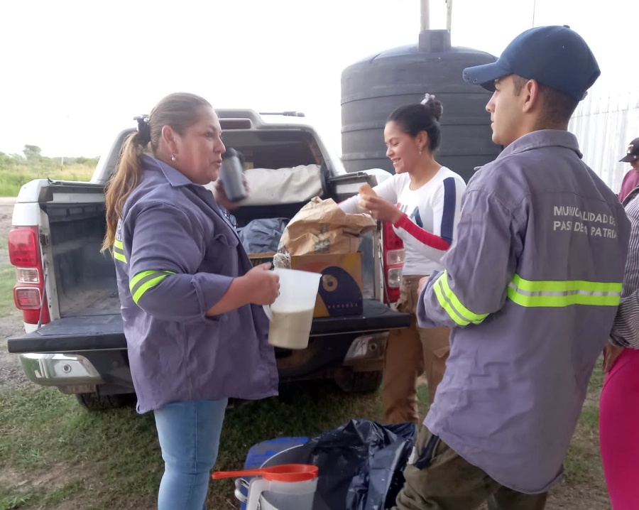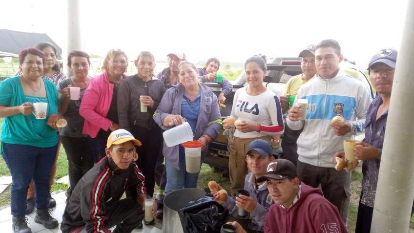 El personal municipal de Paso de la Patria tiene acceso a un excelente desayuno y también almuerzo todos los días, preparado y servido con gran espíritu de camaradería.