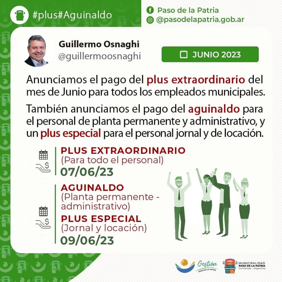 Es una excelente noticia que la Municipalidad de Paso de la Patria esté otorgando un plus extraordinario para los trabajadores de diferentes áreas.