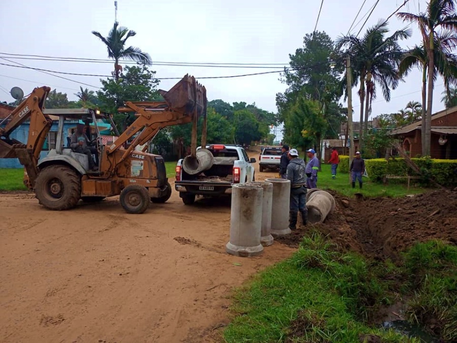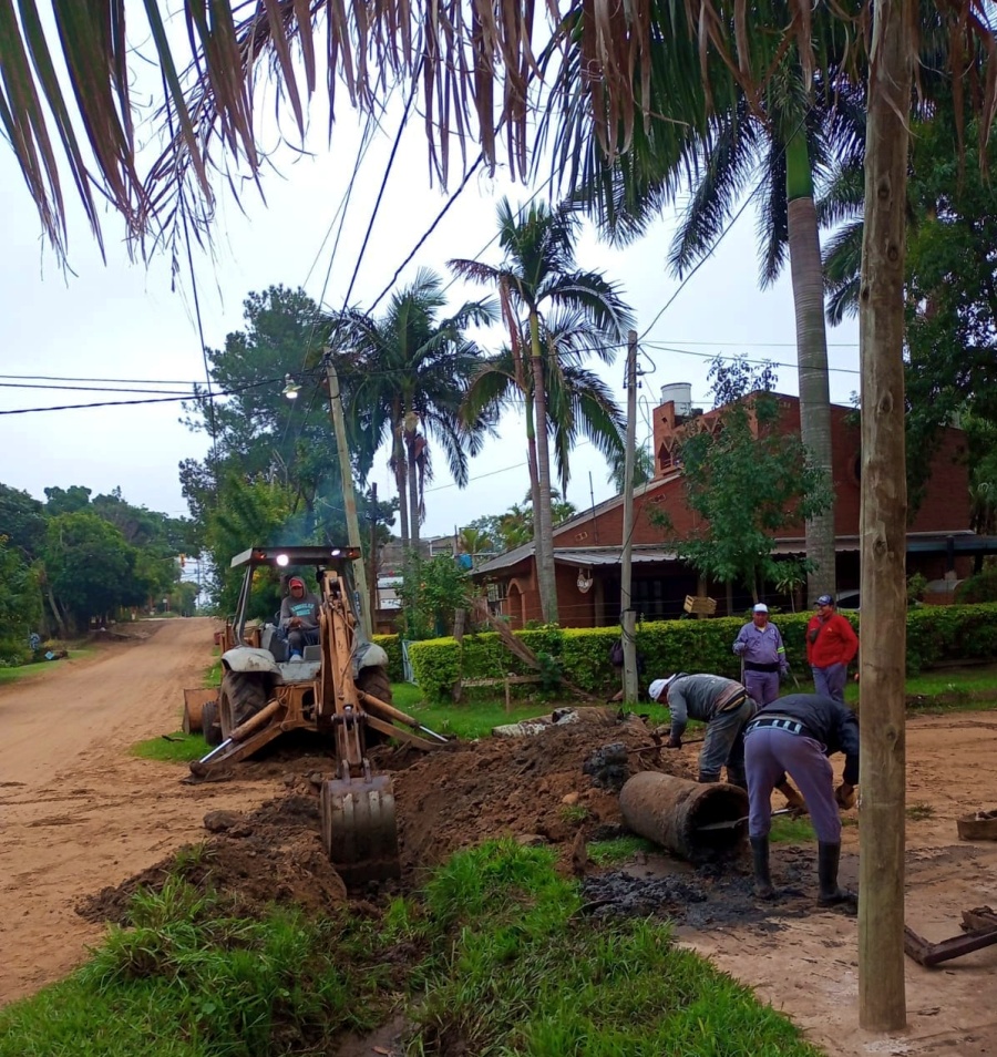 La Municipalidad de Paso de la Patria, desde la Dirección de Obras Públicas, avanza con tareas de zanjeo y colocación de tubos.