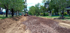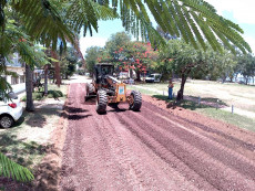 Obra Públicas, enripiado en la zona del Complejo Virgen de Itatí del Sindicato del Seguro y acondicionamiento del Albergue Deportivo.