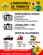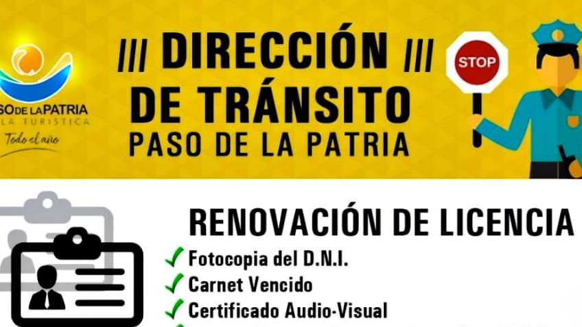 La Municipalidad de Paso de la Patria, a través de la Dirección de Tránsito, informa a la comunidad sobre los requisitos vigentes para la obtención de Licencias de Conducir. El trámite está sujeto a las circunstancias imperantes de cuarentena, conforme al DNU emitido por el Poder Ejecutivo Nacional y Resoluciones municipales.