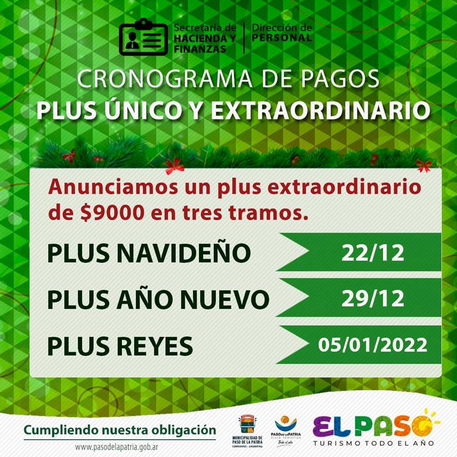 En las fechas de las fiestas de fin de año (Navidad, Año Nuevo y Reyes) los agentes municipales de Paso de la Patria recibirán un plus de $ 9.000 en tres tramos.