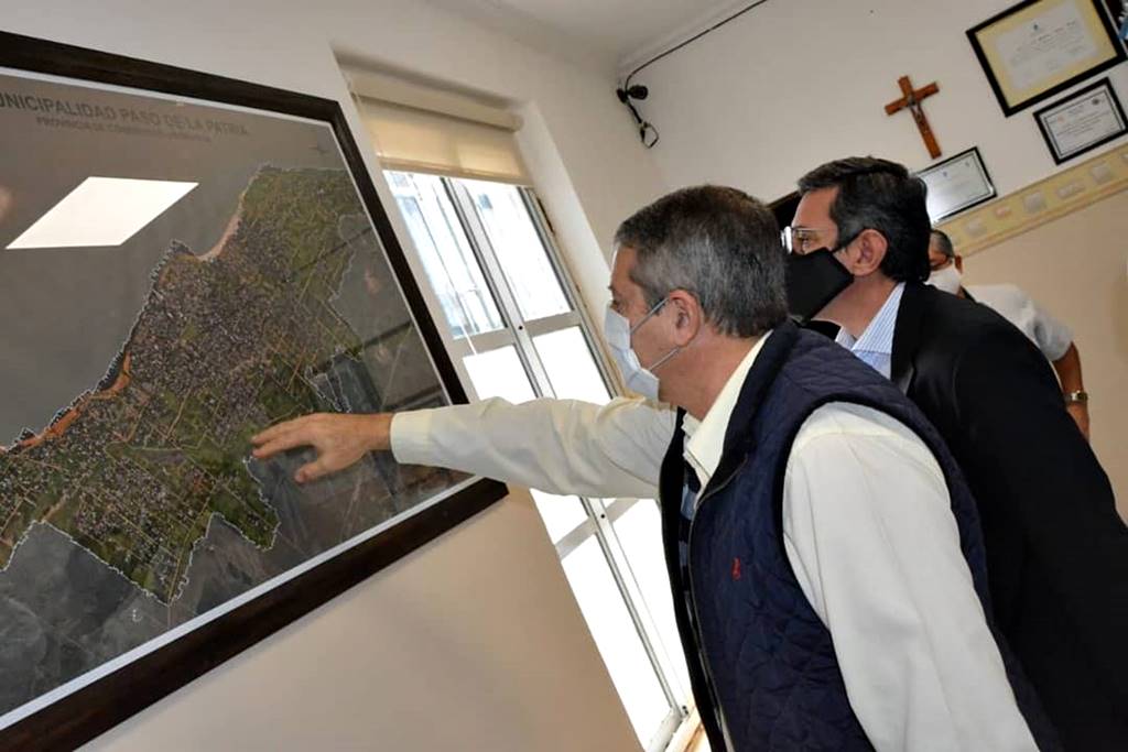 El intendente de Paso de la Patria, Guillermo Osnaghi, recibió al ministro de Seguridad de la Provincia, Juan José López Desimoni. Fue este viernes al mediodía. También participaron concejales, autoridades policiales, sanitarias y municipales, bomberos voluntarios, propietarios de casas y vecinos de la villa turística.