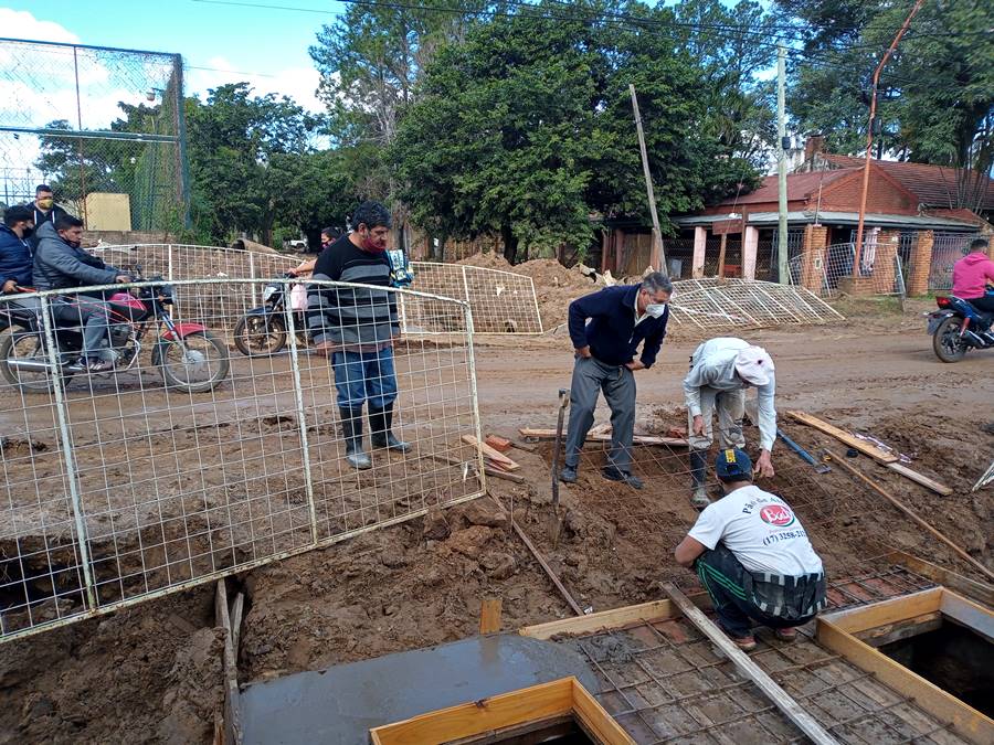 Osnaghi constata los trabajos de armadura para las tapas de hormigón de las cámaras por las que podrán retirarse las aguas y evitar inundaciones logrando un escurrimiento mucho más eficiente por volumen y rapidez.