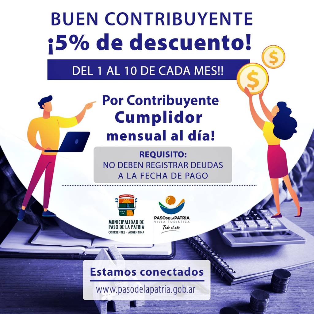 La Municipalidad de Paso de la Patria, a través de la Secretaría de Hacienda y Finanzas informa sobre la puesta en vigencia del Pago Anual Anticipado Año 2021 de tributos municipales.