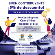 Se consideran Contribuyentes Cumplidores a quienes no registren, a la fecha del pago, incumplimientos en las obligaciones tributarias correspondientes, el descuento es de 5 %.
