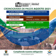 30 de agosto: Sectores Varios, Reciclado y Locación (en cajeros desde el 28).