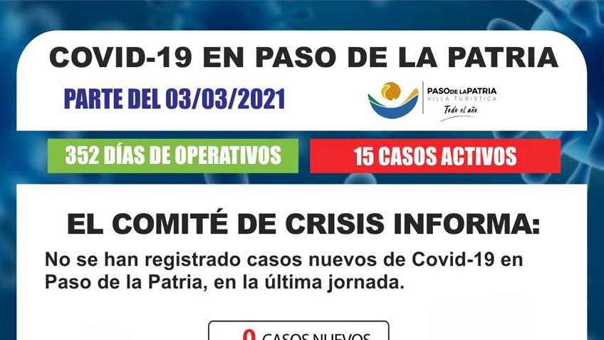 En la última jornada no se han registrado casos nuevos de Covid-19 en Paso de la Patria.