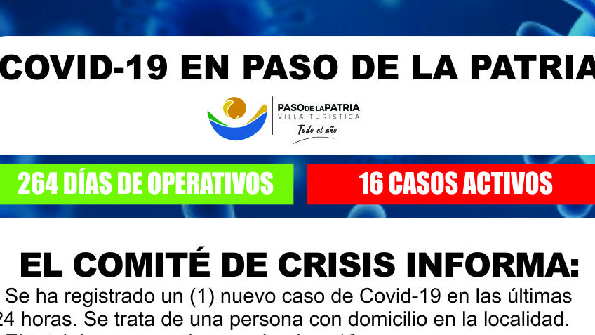 Se ha registrado un (1) nuevo caso de Covid-19 en las últimas 24 horas. Se trata de una persona con domicilio en Paso de la Patria.
