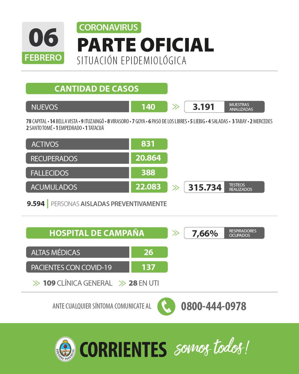 - 831 casos activos.