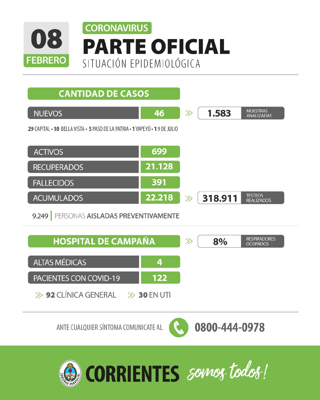 - 9249 personas aisladas preventivamente.