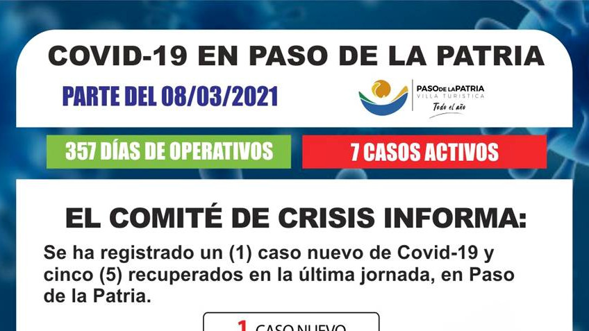 En la última jornada se ha registrado un (1) caso nuevo de Covid-19 y cinco (5) recuperados en Paso de la Patria.