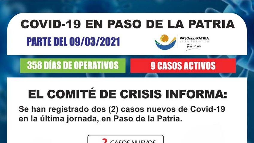 En la última jornada se han registrado dos (2) casos nuevos de Covid-19 en Paso de la Patria.