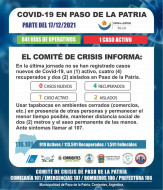 En las últimas 24 horas no se han registrado casos nuevos de Covid-19, un (1) caso activo, cuatro (4) recuperados y dos (2) personas están aisladas preventivamente en Paso de la Patria.