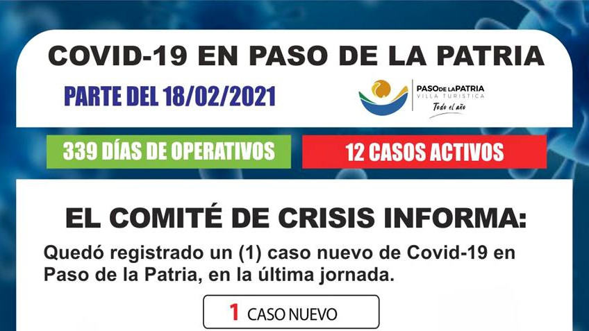 En la última jornada se ha registrado un (1) caso nuevo de Covid-19 en Paso de la Patria.