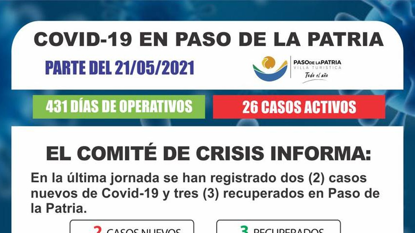 En la última jornada se han registrado dos (2) casos nuevos de Covid-19 y tres (3) recuperados en Paso de la Patria.