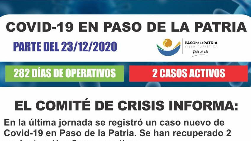 En las últimas 24 horas se ha registrado un nuevo caso de Covid-19 en Paso de la Patria.