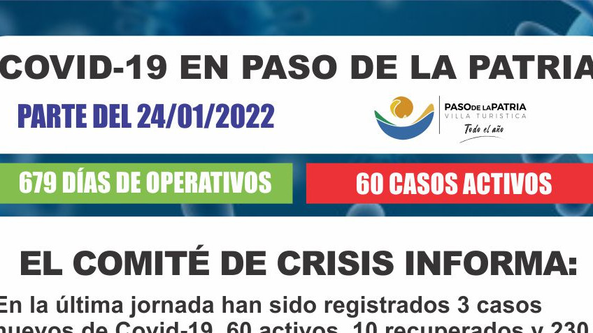 En las últimas 24 horas han sido registrados tres (3) caso nuevo de Covid-19, diez (10) recuperados, sesenta (60) casos activos y doscientos treinta (230) personas están aisladas preventivamente en Paso de la Patria.