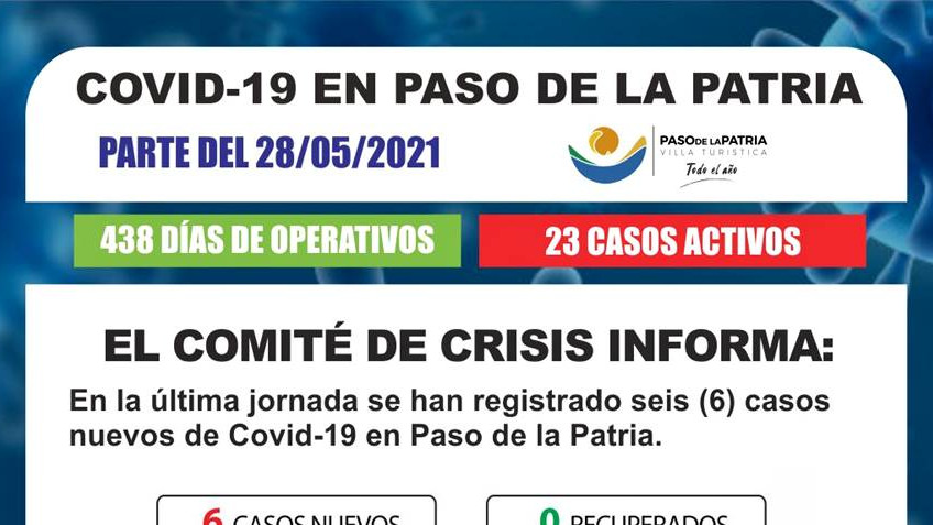En la última jornada se han registrado seis (6) casos nuevos de Covid-19 en Paso de la Patria.